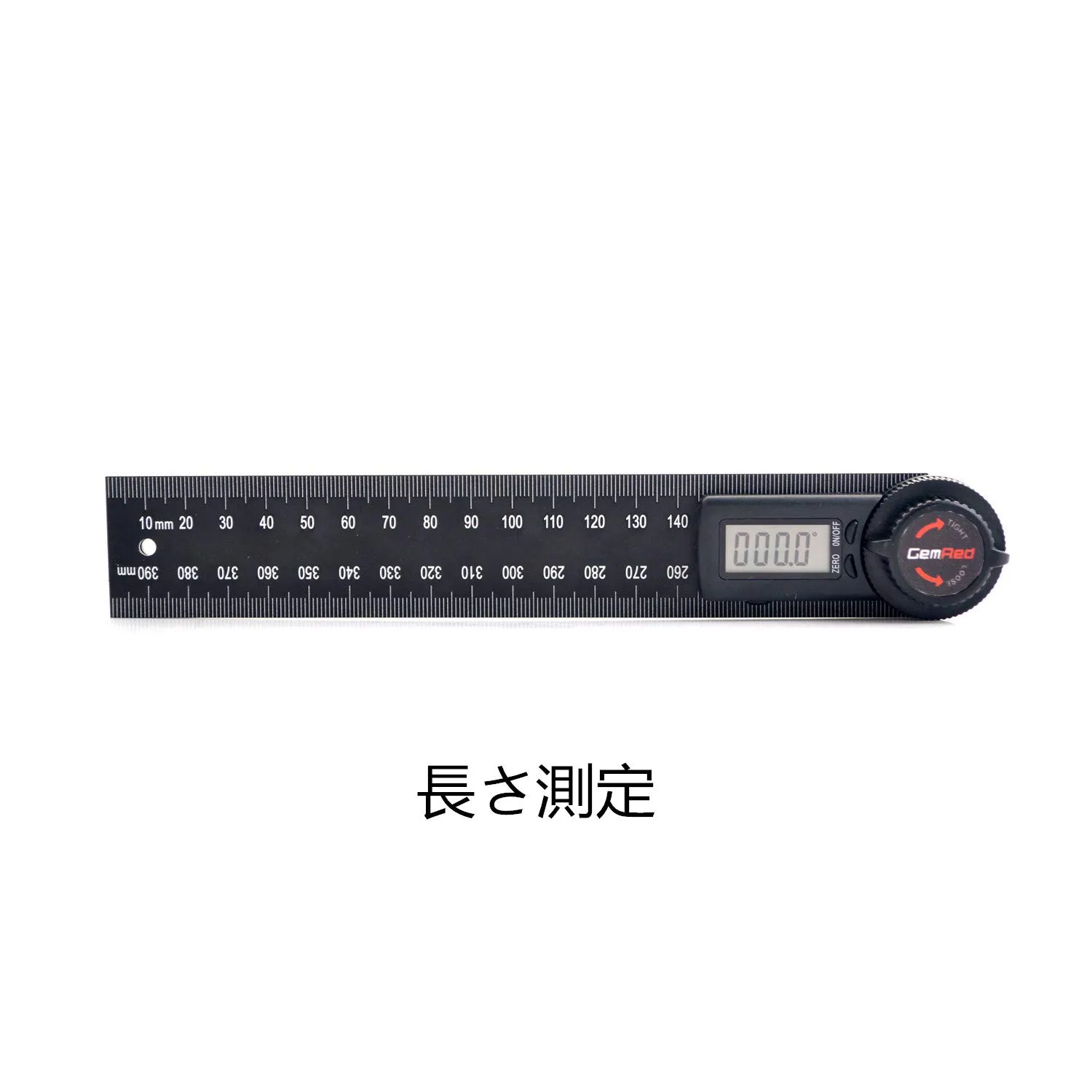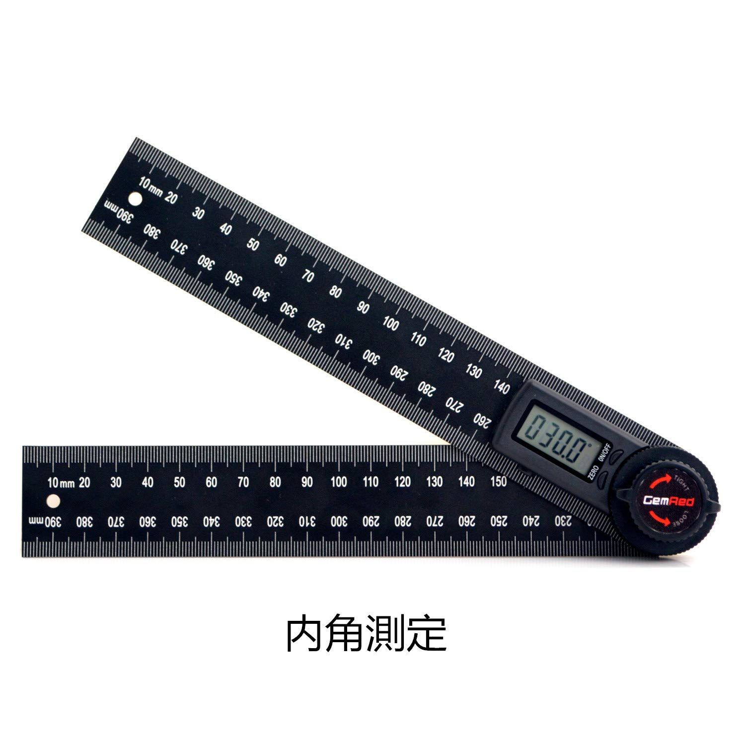 GemRed デジタル角度計 分度器 測定器速読デジタルプロトラクター 角度ゲージ 角度ルーラー 長さ測定 アルミニウム 角度定規 360度自由調整 (黒 200mm)