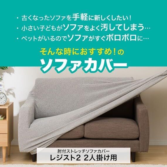 ニトリ(NITORI) 肘付ストレッチソファカバー レジスト2 BR 2人掛け用 7841977