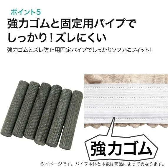 強力ゴムとズレ防止用固定パイプでしっかりソファにフィット