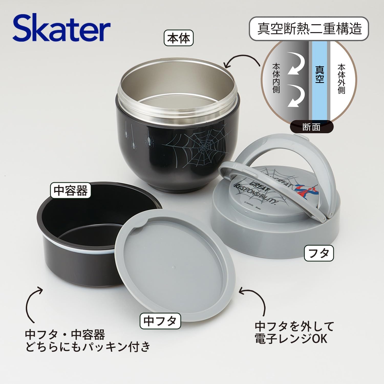 新品 スケーター(Skater) 保温 保冷 丼ぶり ランチジャー 大容量 1250ml 折りたたみハンドル付 抗菌 スパイダーマン 男の子 LDNO13AG