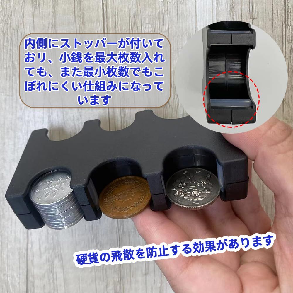 【落下防止】内蔵されたストッパーにより、たとえ硬貨を最大数収納していても、最小数しか入っていなくても、硬貨がこぼれ出しにくい設計です。この特徴は非常に優れており、硬貨が1枚だけ入っている場合でも本体から脱落することなく、硬貨が落ちる心配がありません。硬貨の散乱を防ぎ、取り出す時もスムーズに行えます。