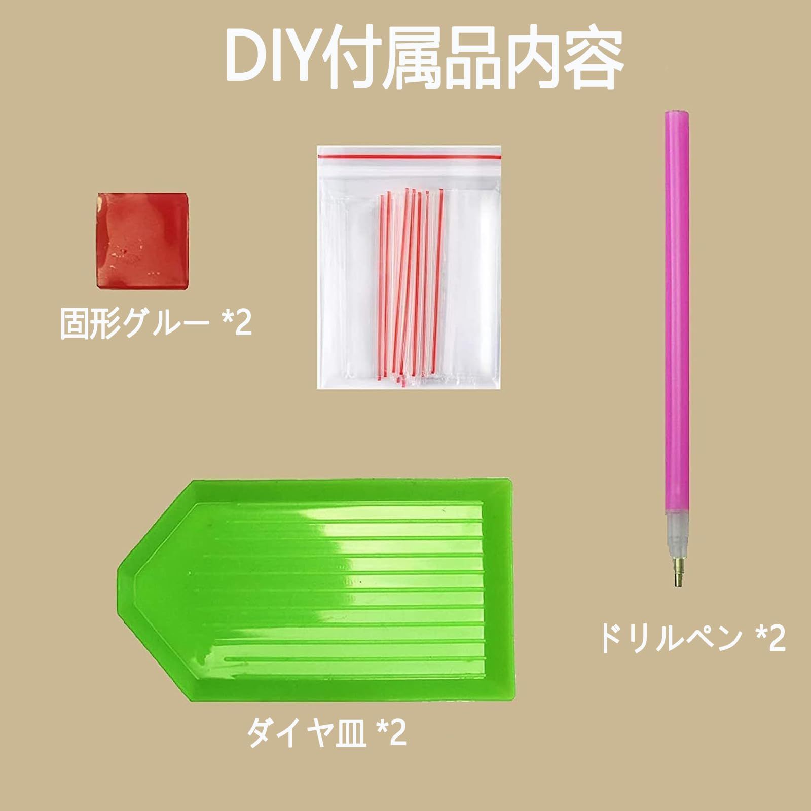 【パッケージ内容】ダイヤモンド絵のキャンバス2枚、各色対応ダイヤモンド、ドリルペン2本、ダイヤ皿2個、固形グルー2枚。滑り止めと疲労防止カバーが付いているので、使用中に滑りにくくなります。 ??