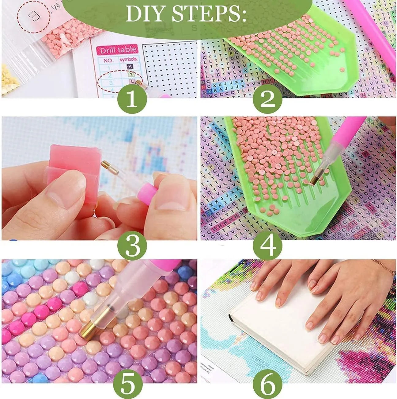 【作り方は簡単】ペン先をピンクのグルーを付けて台紙にビーズと同じ記号または英数字を貼り付けるだけでキラキラなダイヤモンドアートが仕上がります。クロスステッチ刺しゅうより気軽になり、集中力がUP、達成感もじゅうぶん味わっていただけます。 ??