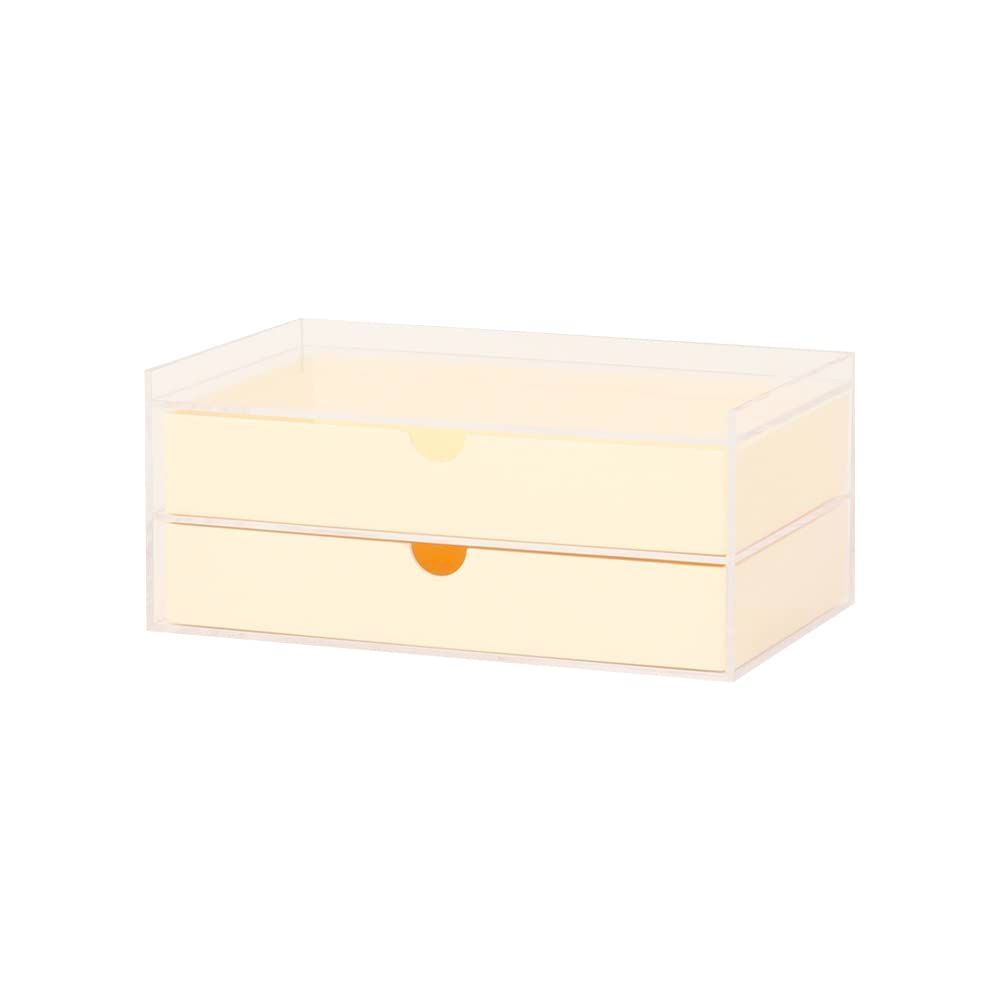 Color:オフホワイト_Size:FREE 卓上チェスト 収納ボックス メイクボックス コスメボックス 小物入れ 小物収納 引き出し メイクケース アクリルケース 2段★収納チェスト(オフホワイト)