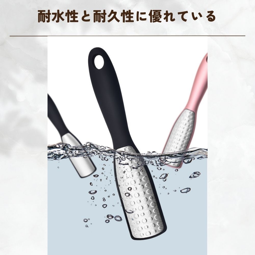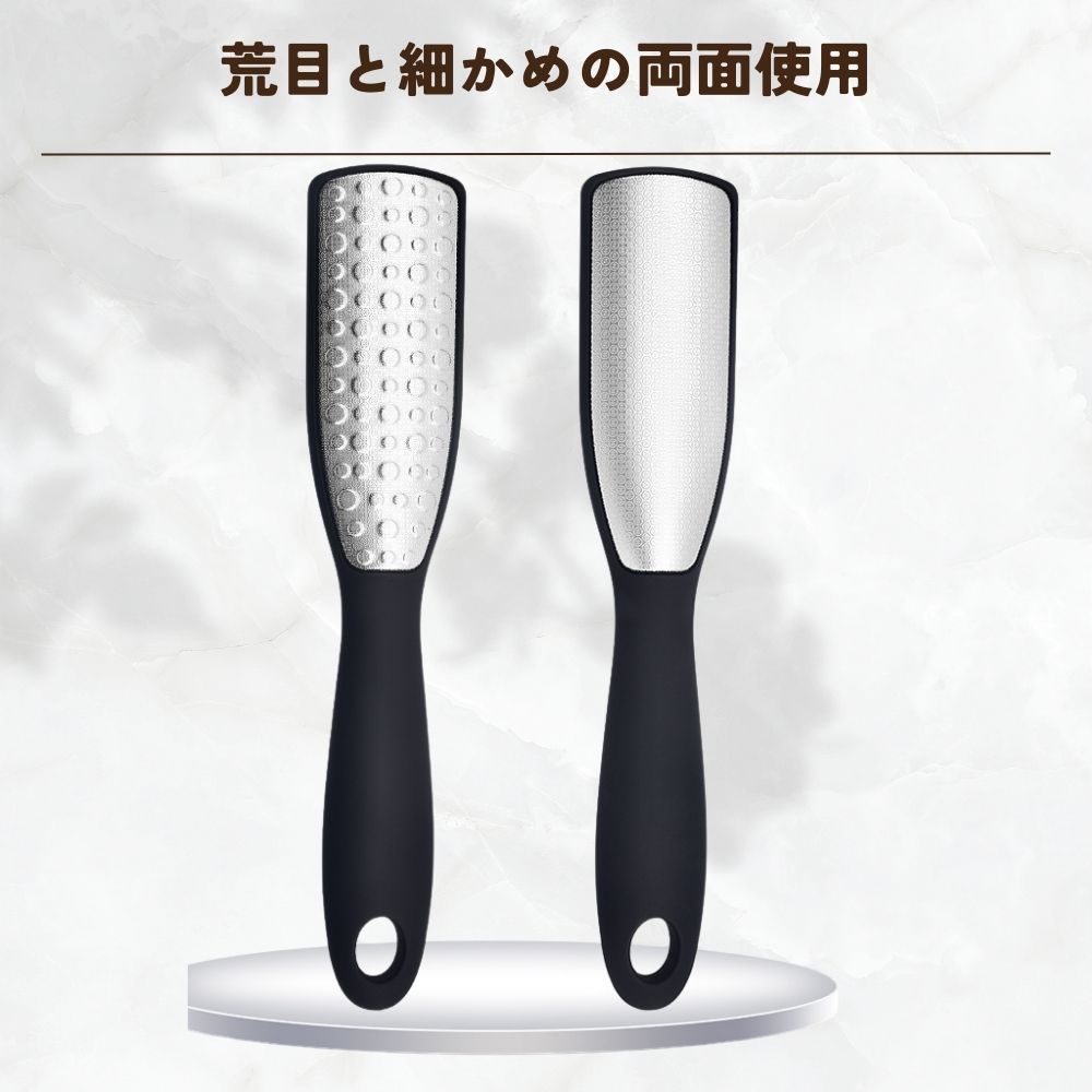 この商品は角質取り用の両面やすりで、荒目面と細かめ面の実用的なデザインが特徴です。荒目面は厚い皮や固く角質化した皮膚を手軽に除去でき、細かめ面は足をマッサージして滑らかにします。耐水性、耐久性に優れたステンレス製で、水洗いが可能なため浴室でも使用できます。また、乾燥した足や濡れた足にも使用でき、持ち手は人間工学に基づいた握りやすい設計です。スリムなデザインで持ち運びにも便利で、吊り下げることができるため乾燥にも便利です。長時間立つ仕事の人やハイヒールを履く女性、スポーツ選手、お年寄りなど、足を綺麗にしたい全ての人におすすめできるアイテムです。ただし、海外製品で作りが荒い場合があり、サイズに誤差があることもご了承いただく必要があります。