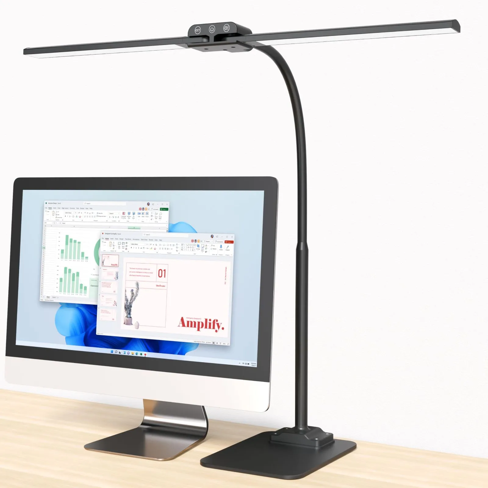 ダブル光源&タッチ式:ダブルヘッドの位置を左右分割し、各々のライトバーは最大約90°まで左右角度を調節でき、中央から34cmずつ羽のように広がります。