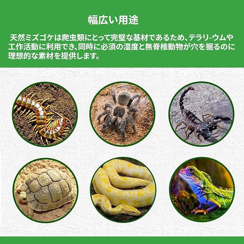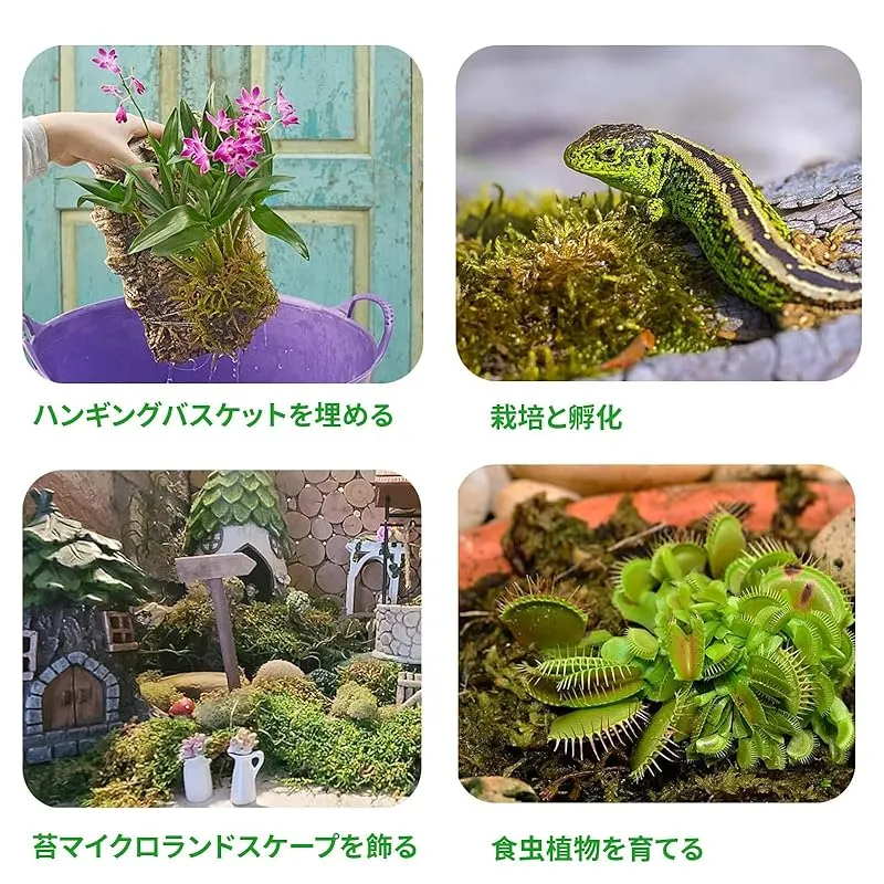 【爬虫類飼育にも】水苔 園芸はテラリウムや爬虫類の飼育環境に最適です。水苔は適度な湿度保持と無脊椎動物の生息環境作りをサポートします。