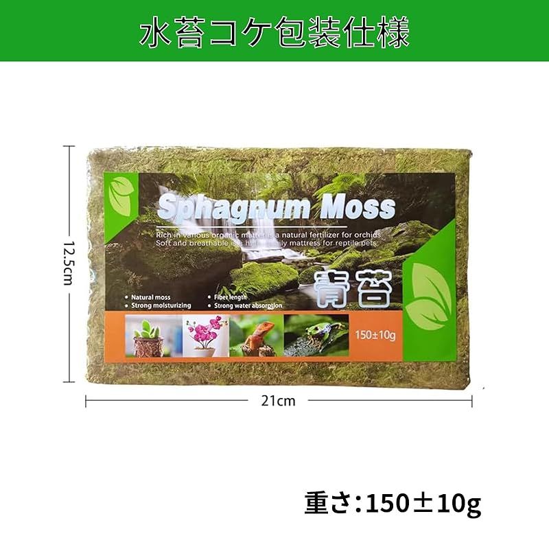 【商品説明】 水苔 大容量は内容量150g±10gで、コンパクトサイズ(21×13×2cm)の乾燥圧縮タイプです。水苔は輸送中の破片発生があっても品質に影響ありませんのでご安心ください。水苔 爬虫類は蘭・多肉植物・食虫植物の栽培はもちろん、フラワーアレンジメントの素材としても活用可能です。水苔はナチュラルな風合いを演出するデザイン素材としても人気があります。
