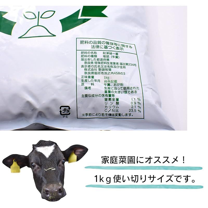 【秋津緑一番】1kg 小サイズ 牛ふん たい肥 牛糞醗酵堆肥 匂わない 野菜 果物 薔薇 植物 観葉 土壌 改良 花 園芸 農業 0