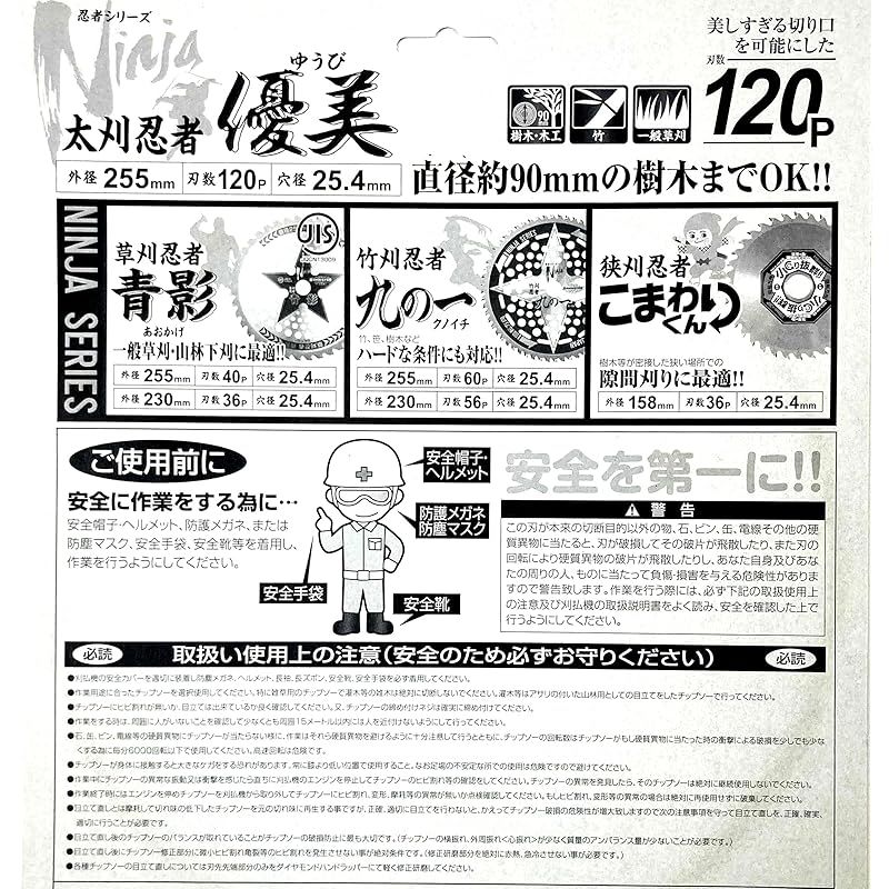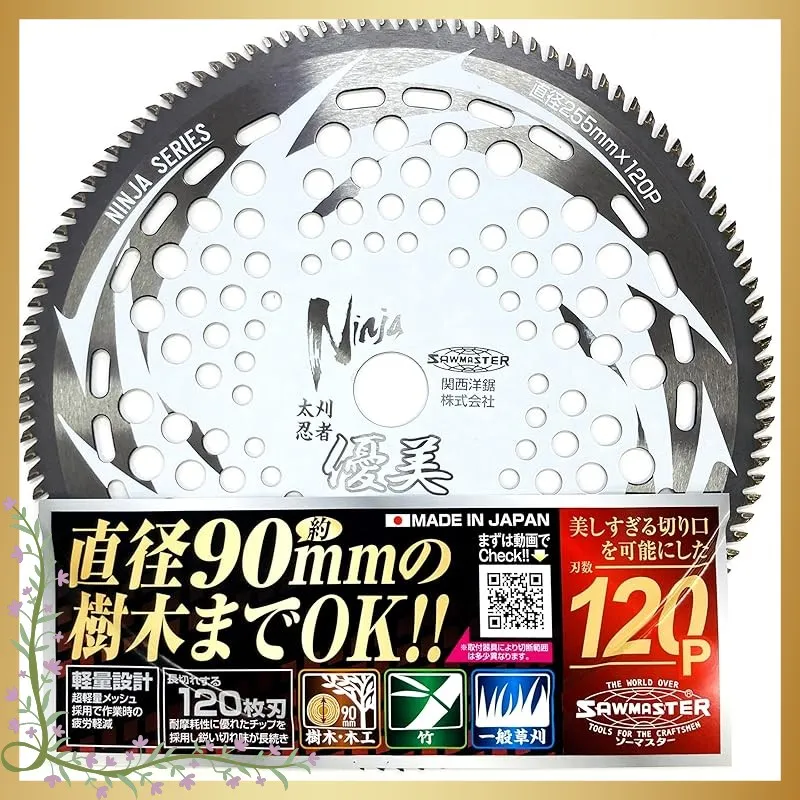 匠作優美草刈用チップソー120枚刃×255mm穴径25.4mm【直径9cmまでの樹木・竹の切断が可能】日本製, T-1790 0