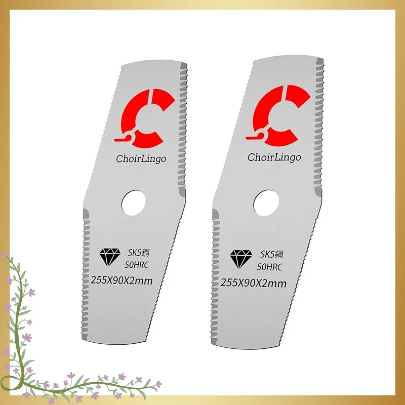 【便利な草刈り機 2枚刃 セット】 標準的な255×90×2mmのサイズで、 一式が揃う 草刈り機 2枚刃 セット。交換用として常備すれば、突然の刃こぼれや切れ味低下にも即対応できます。