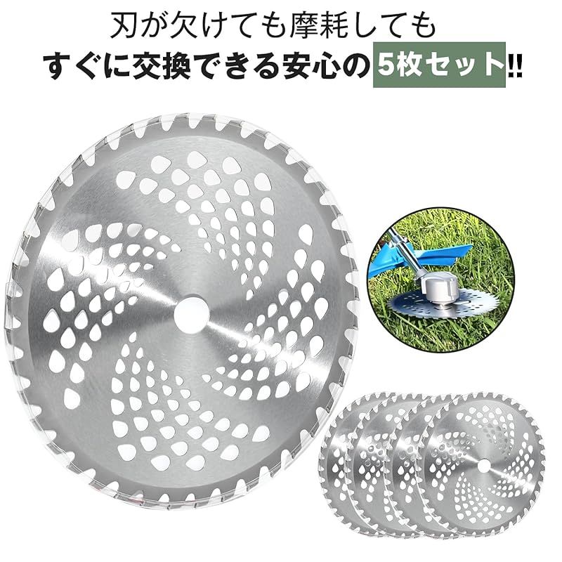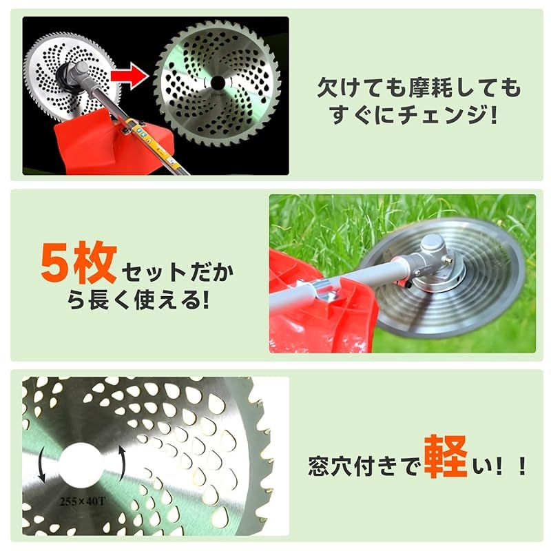 Chaoxinyizu 草刈り機 替え刃 草刈用 チップソー 5 枚セット 草刈り機の刃 外径255mm×40T 刃数 耐久性 簡単取り付け タイル 雑草 除草 0