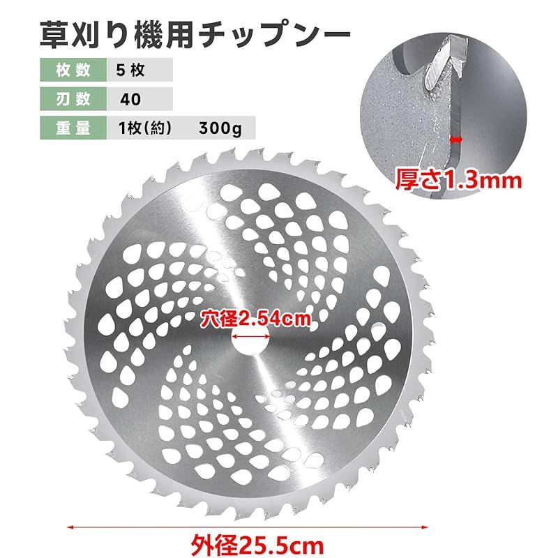 【商品説明】 Chaoxinyizu 草刈り機 替え刃 草刈用 チップソー 5枚セット 草刈り機の刃 外径255mm×40T 刃数 耐久性 簡単取り付け タイル 雑草 除草