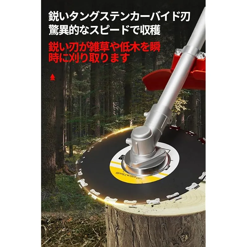 【鋭利で耐磨耗、汎用性が高い】超硬チップソー刃は、若い木の除去に適用。耐衝撃性にも長けており、切断時の切り屑の飛散を効果的に抑制できます。雨天でも、硬い草むらや枝を簡単に切断でき、園芸作業に最適です。