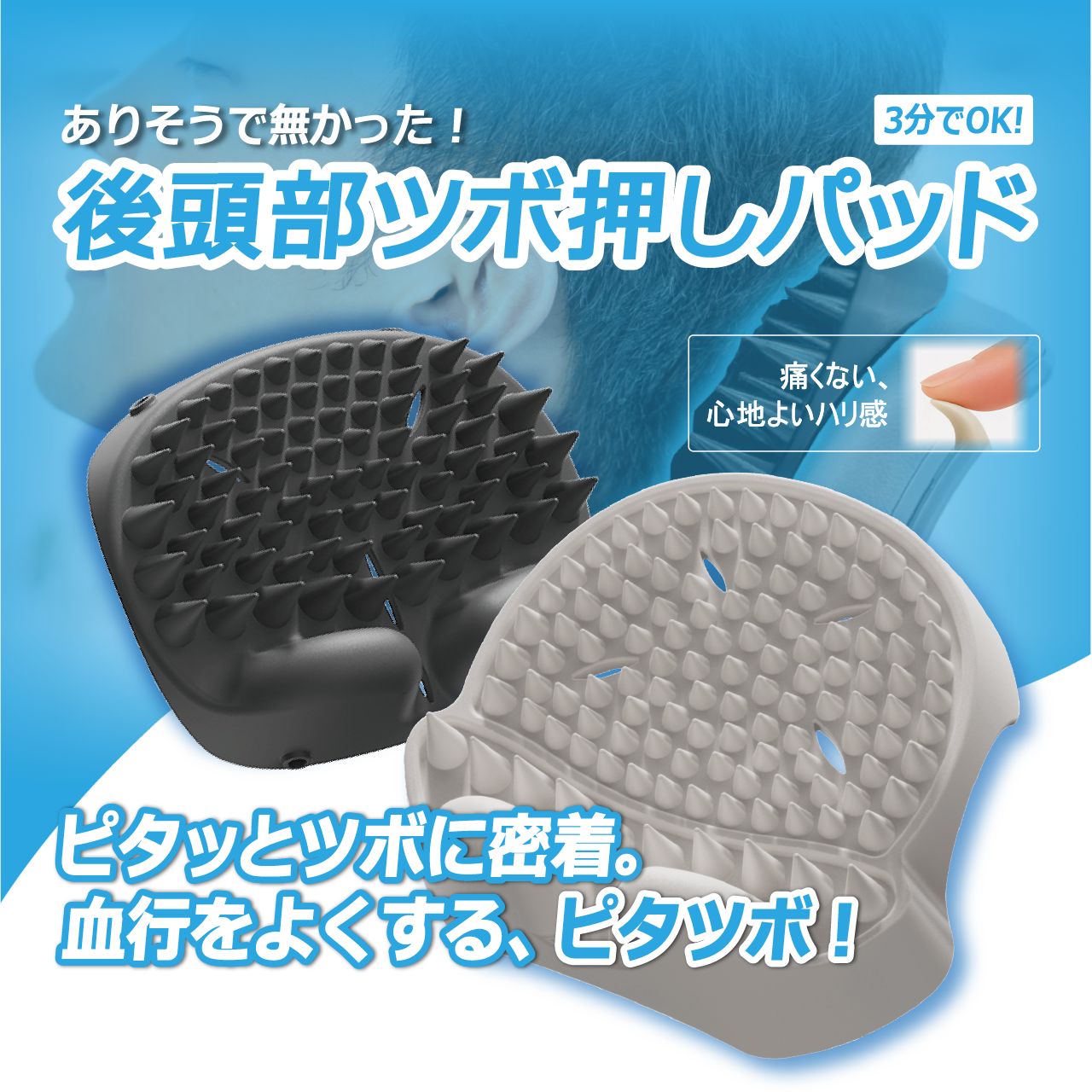 【公式】ピタッツボ 後頭部ツボ押し マッサージパッド マルチ型 ミルクグレイ色