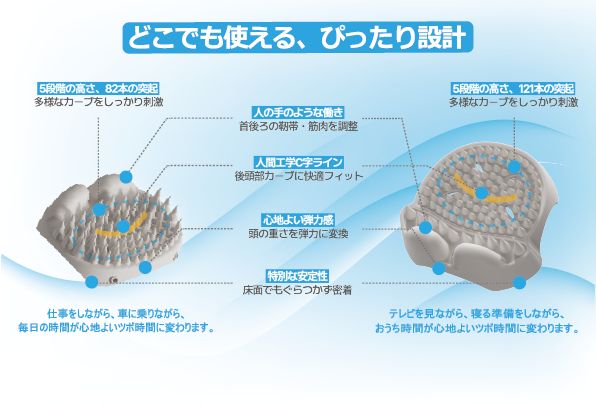 頭をのせるだけで、固まりやすい後頭部のツボをしっかり刺激し、