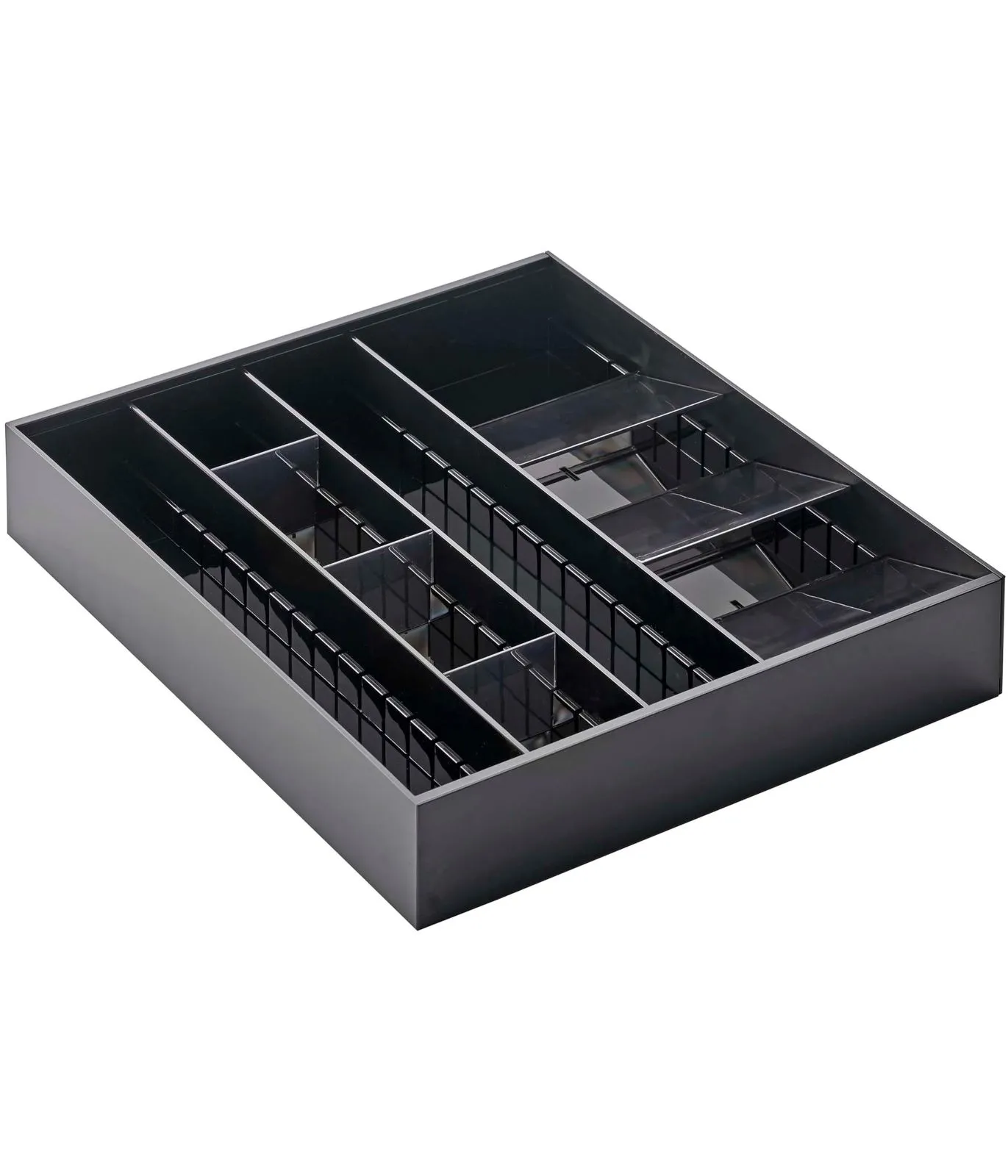 山崎実業(Yamazaki) 立体 横伸縮 カトラリーケース ブラック 約W29.7~47.4XD35XH5.5cm (幅6㎝ずつ 伸縮 )タワー tower 取り出しやすい 斜め仕切り 5416