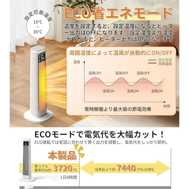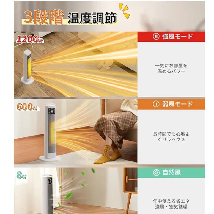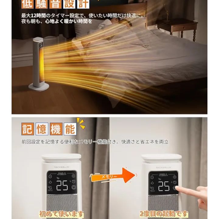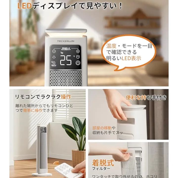 TECXERLLON セラミックファンヒーター 1200W リモコン付き