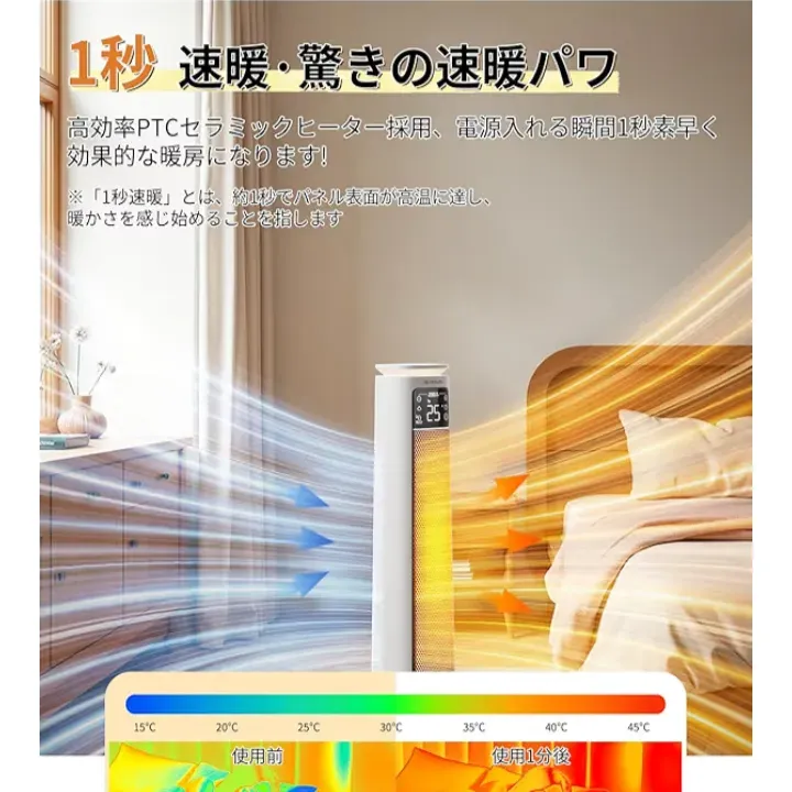 立ち上がりが早いので、寒い朝の着替えやトイレ・脱衣所にも便利✨
