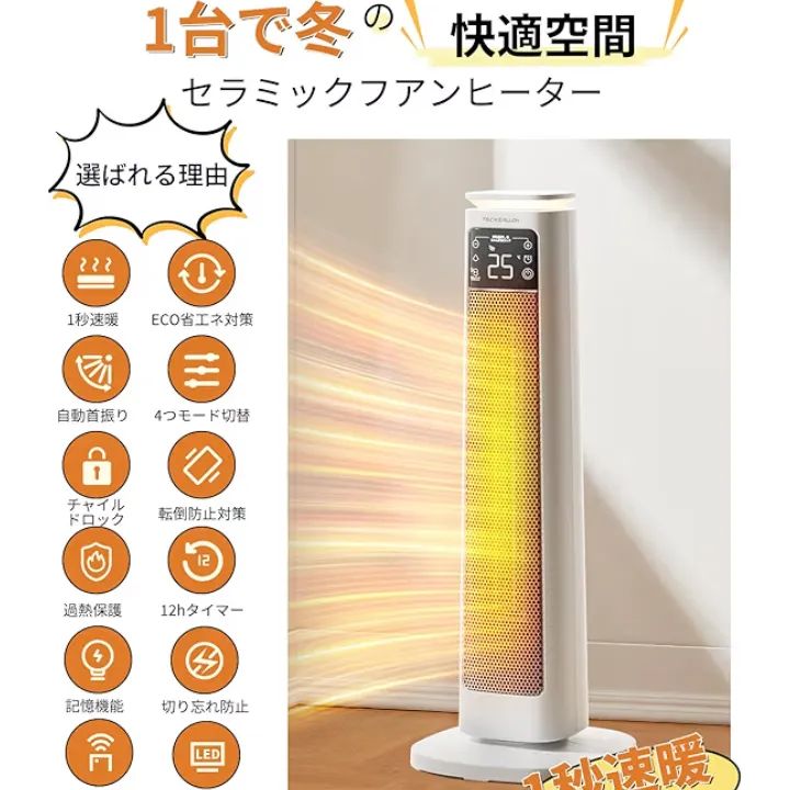 冬の必需品!スリムタイプで場所を取らず、足元や寝室などをすぐに暖めてくれるセラミックヒーターです❄️