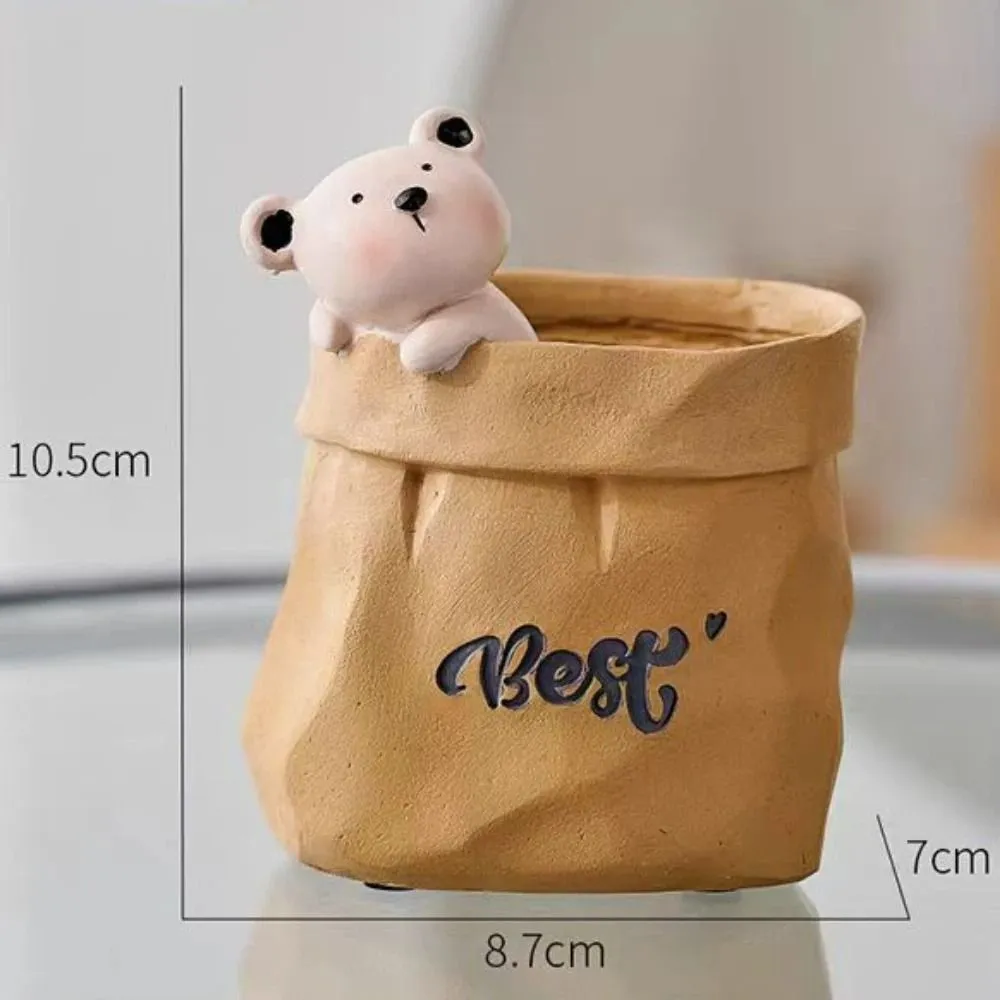 ■商品説明 この「ペンホルダー」は、かわいい動物モチーフのデザインが特徴の多用途なアイテムです。デスク周りや化粧台、キッチンなど、さまざまなスペースで使えるおしゃれな収納ボックスです。ペンや鉛筆、ブラシなどを整理して収納できるため、文具収納やコスメ収納に最適です。多目的に使えるこのアイテムは、シンプルでありながら、生活空間に楽しい雰囲気をプラスしてくれます。 可愛いデザインは子供部屋はもちろん、大人のお部屋にもぴったり。動物好きな方におすすめのこのペンスタンドは、自宅での作業や勉強をより楽しいものにしてくれるでしょう。また、インテリア小物としても美しく、どのスタイルにも簡単にマッチします。 プレゼントにも喜ばれるアイテムで、特に学生やお子様への贈り物にはぴったり。可愛いデザインが目を引き、他の文具やコスメと並べて使うことで、一層おしゃれな空間を演出できます。心を癒すデザインを取り入れて、あなたのデスクや化粧台を華やかに演出しませんか?