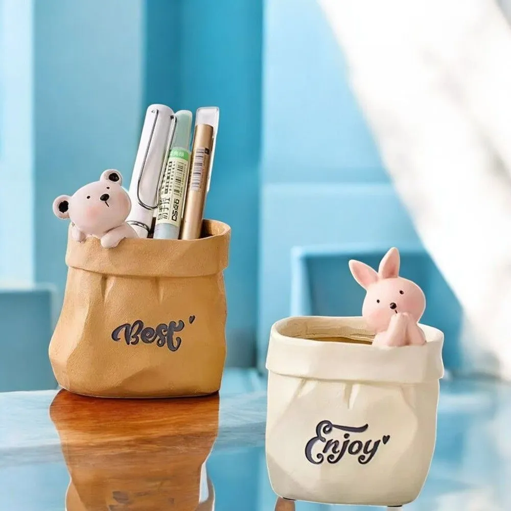 ペンホルダー ペン立て 鉛筆ホルダー 鉛筆立て ペンスタンド ペンケース ブラシホルダー 小物収納 小物入れ インテリア小物 小物 収納ボックス 収納ケース 文具収納 コスメ収納 2バターン 多用途 多目的 かわいい 可愛い 動物