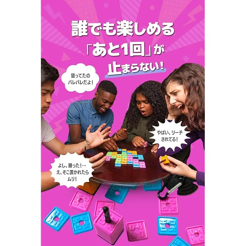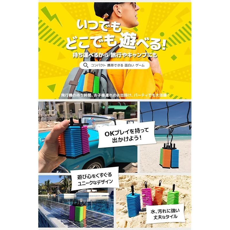 【 コンパクトで持ち運びがカンタン 】 クリップ付きでバッグにつけたり、ハッグの中にかんたんに収納できます。 自宅、ホテル、電車、飛行機の中、パーティ、公園、キャンプなどあらゆるシチュエーションにぴったり。 1プレイ15分程度で友だちや家族と気軽にゲームを楽しめます。 ?
