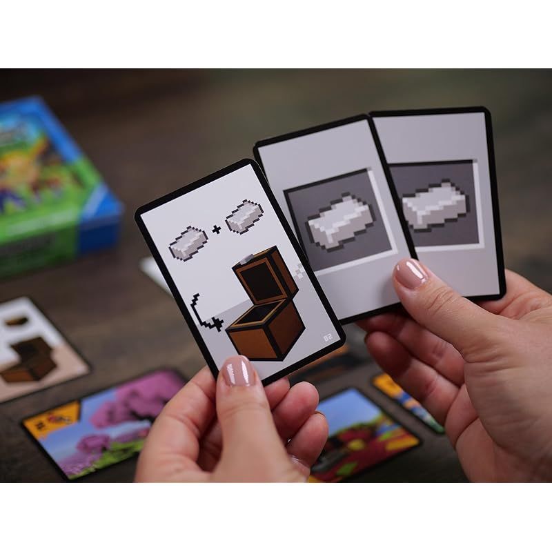 【商品概要】 プレイヤー同士がチームとなって協力してすすめるカードゲーム。対象年齢:8歳から、プレイ人数:1~4人、プレ時間:約30分 みんなでチェストカードに描かれたアイテムを探します。 1つを除いた残りのチェストに、指定されたアイテムを入れればプレイヤー側の勝ちです 。 風景カードを探検して隠されているアイテムを探したり、敵のモブと戦ったり、空腹カードを支払ってアクションを実行したりすることでマインクラフトの世界を存分に楽しむことができます。 ゲームオーバーカードが出たらゲーム終了。 ルールがシンプルで、マインクラフトのファンやカードゲーム好きな方々に楽しんでいただけます。