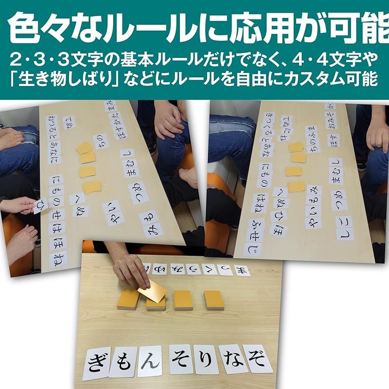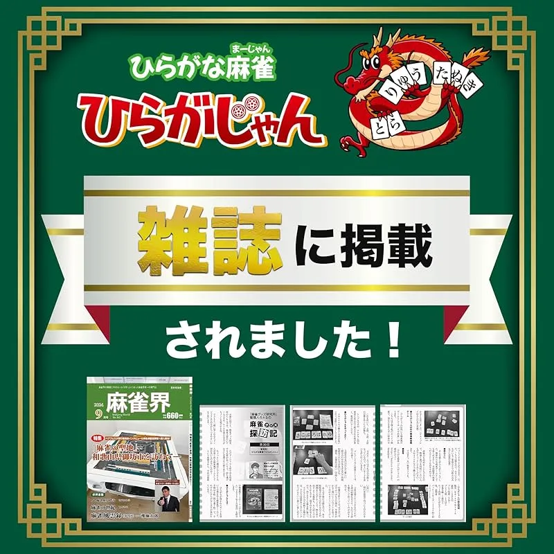 【新感覚!麻雀風カードゲーム】ひらがじゃんのルールは簡単!麻雀の要領で札を引き2・3・3文字のことばを揃えるだけ!そろわなければ手札から1枚カードを捨てます。 様々な選択肢の中から、文字が揃ったときの爽快さをお楽しみください。