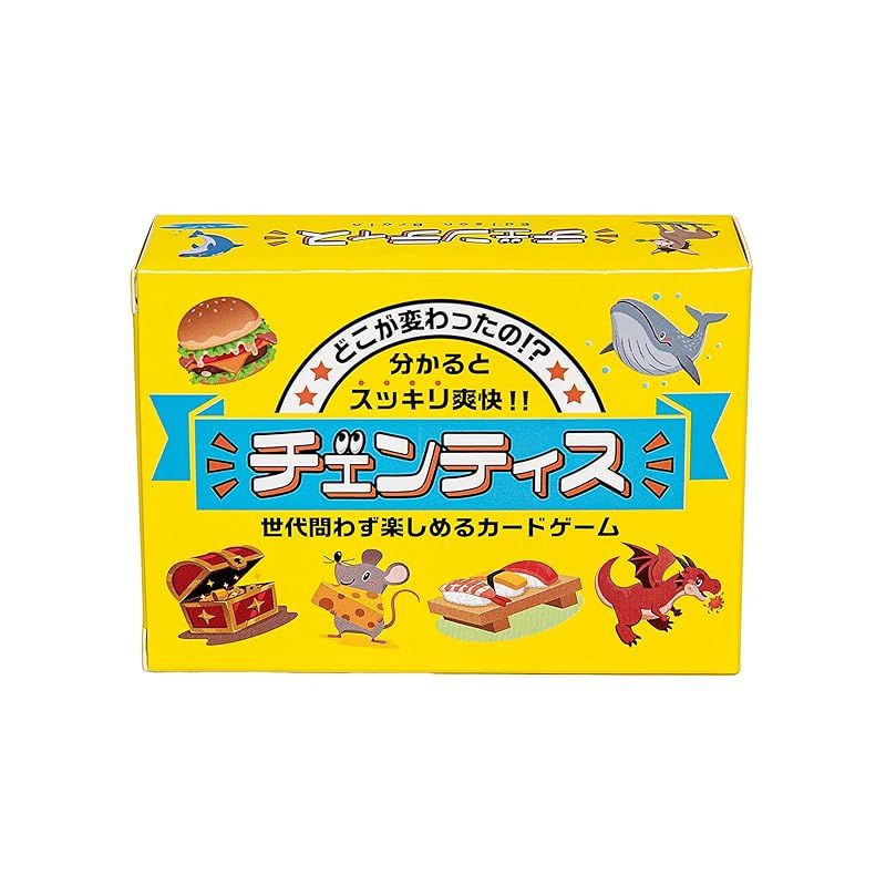【商品説明】 新しい間違い探しゲーム:世界中で大人気の「どれがかわったの?」をベースにカード枚数の増量、日本人向けイラストへの修正や新ルールを設けた間違い探しゲーム「チェンティス」です。楽しみながらお子様の頭のトレーニングはもちろん、老若男女どなたでも楽しめるシンプルカードゲームです。