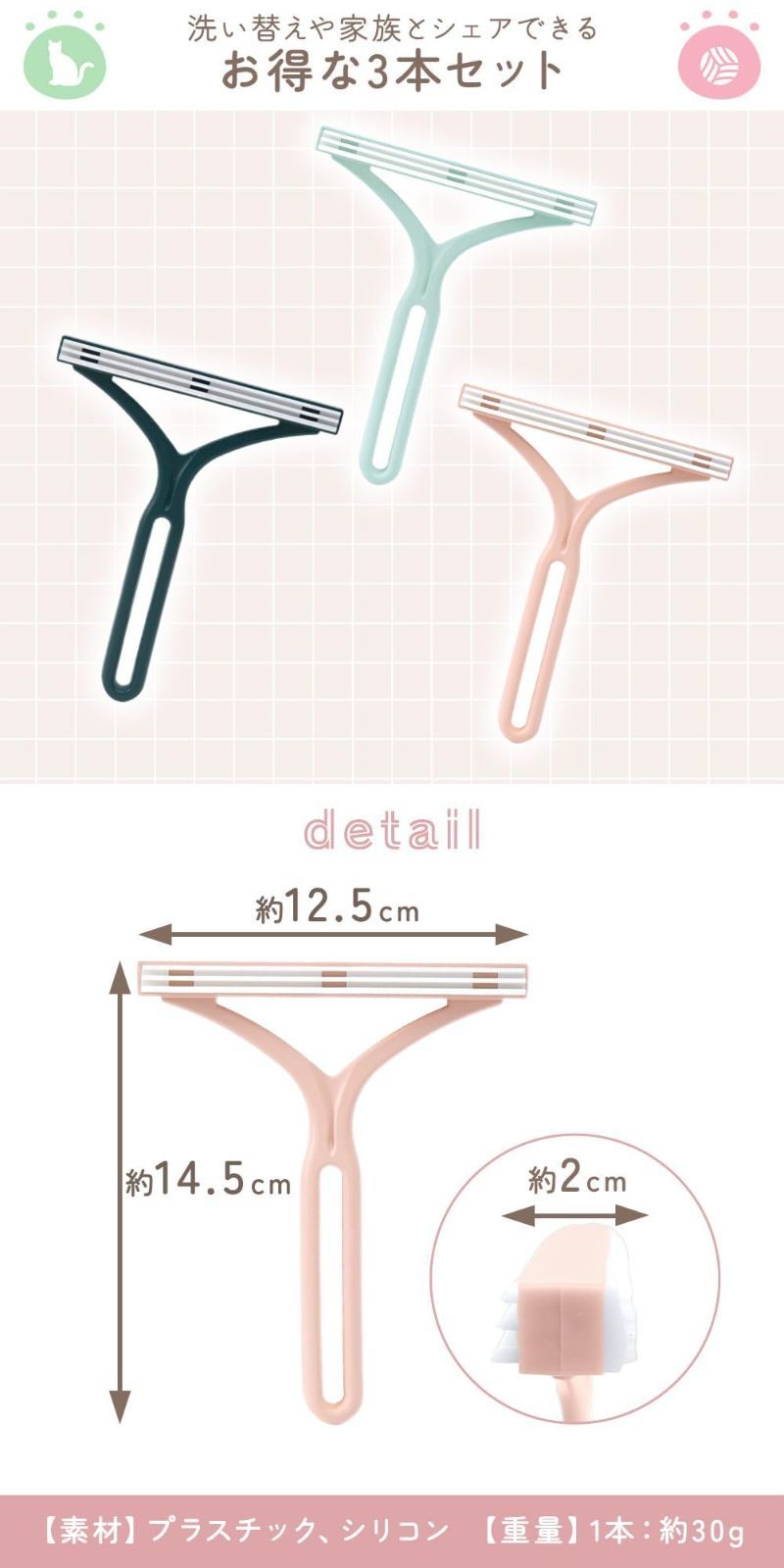 【プレゼントにも喜ばれる実用アイテム】 ペット好きな方への贈り物やプレゼントとしてもおすすめ!便利で実用的な毛取りクリーナーです ※商品ご使用時の破損や事故などについては責任を負いかねます。 ※輸入品の為、輸送の際にキズ・汚れ・箱潰れが生じている場合がございますが商品は新品ですのでご安心ください。 ※サイズ・重量等は多少の誤差が生じる場合がございますがご了承ください。 ※商品の画像はお客様がご覧になっているモニター・画面環境・照明などの関係上、実際の色味と多少異なる場合がございます。 ※入荷時期によって若干色味やデザイン等が異なる場合もございますのでご了承ください。 ※万が一、製造上の原因による品質不良の場合は同等品との交換となりますので、それ以外の責はご容赦下さい。 最後までご確認頂き誠にありがとうございました。 上記をご確認頂き、ご購入いただけましたら幸いです。 何かご不明な点がございましたらお気軽にメッセージからお問い合わせ下さい。