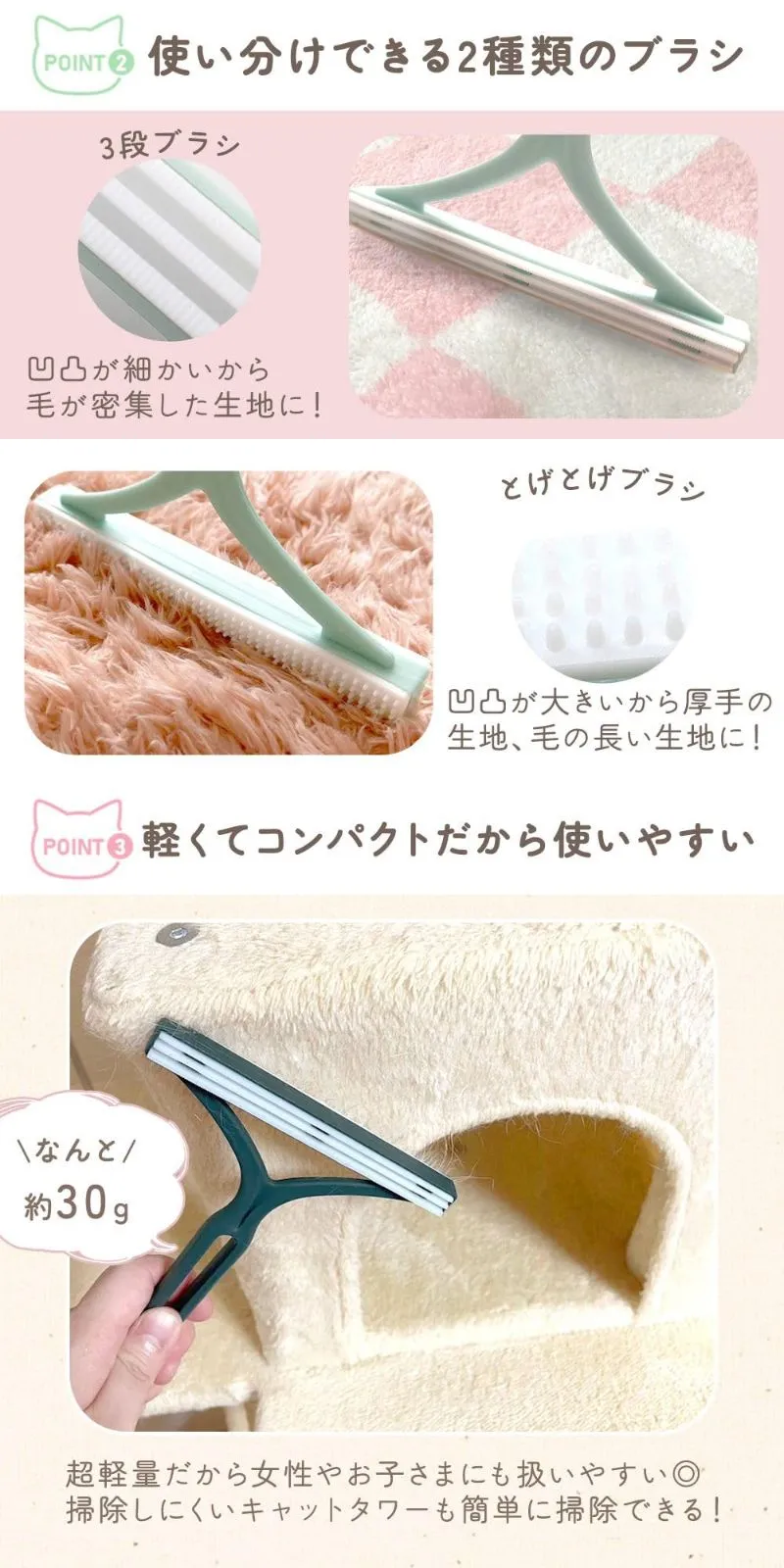 【多用途に使える便利ブラシ】 洋服や寝具、埃取りにも対応する多用途設計!ペット用品としても家庭用としても万能なアイテムです
