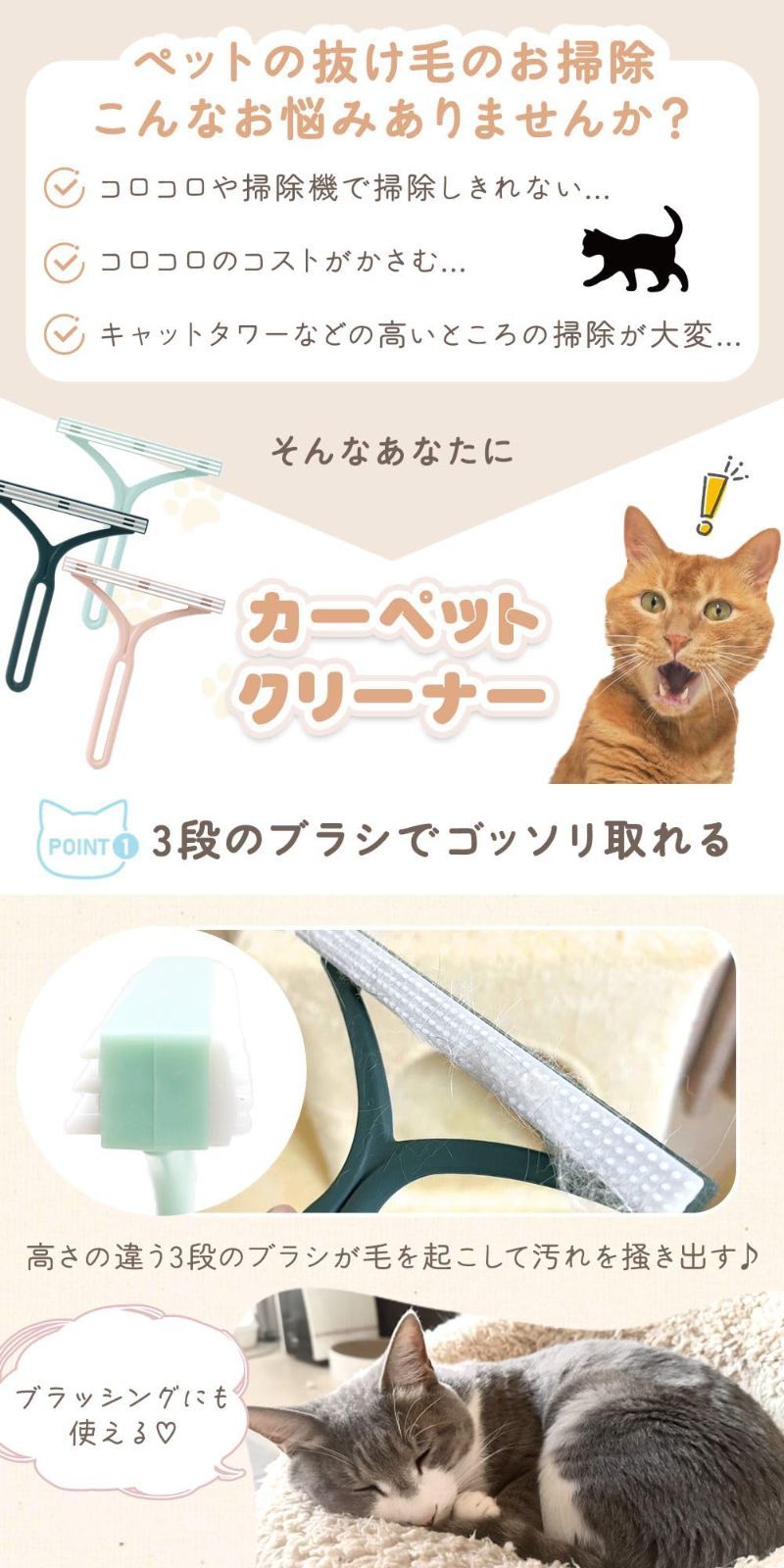 【ペットの抜け毛をしっかりキャッチ】 犬や猫の毛を簡単に取り除ける専用クリーナー!絨毯やソファ、布団などの掃除に大活躍