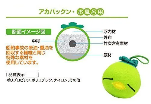 製品概要 : 湯垢を吸う繊維で出来ています。浴槽に入れるだけで、特殊な不織布が湯垢や皮脂汚れを吸着します。