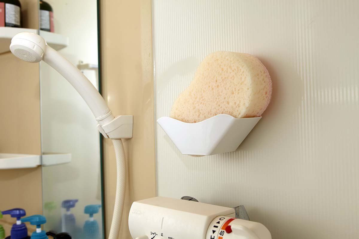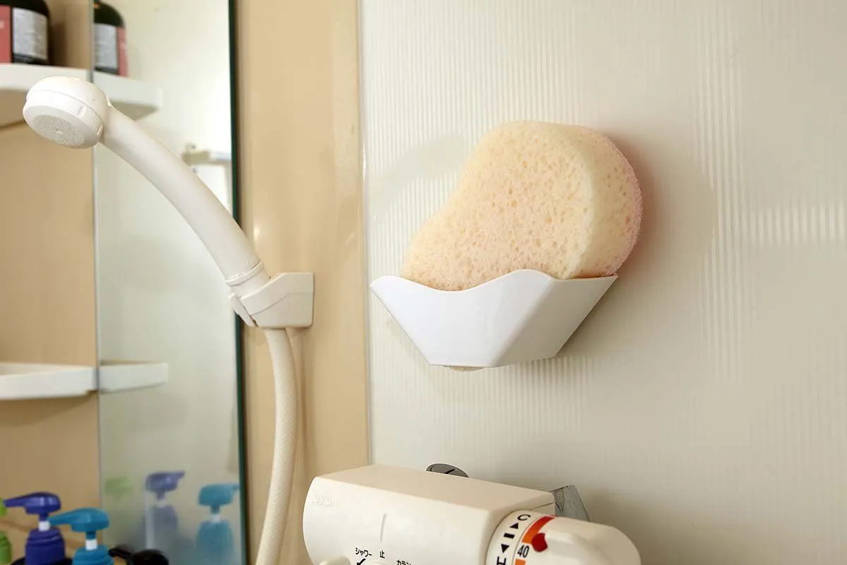 ●主婦のアイデアから生まれたキッチン、お風呂場などでスポンジを立てかけるラック