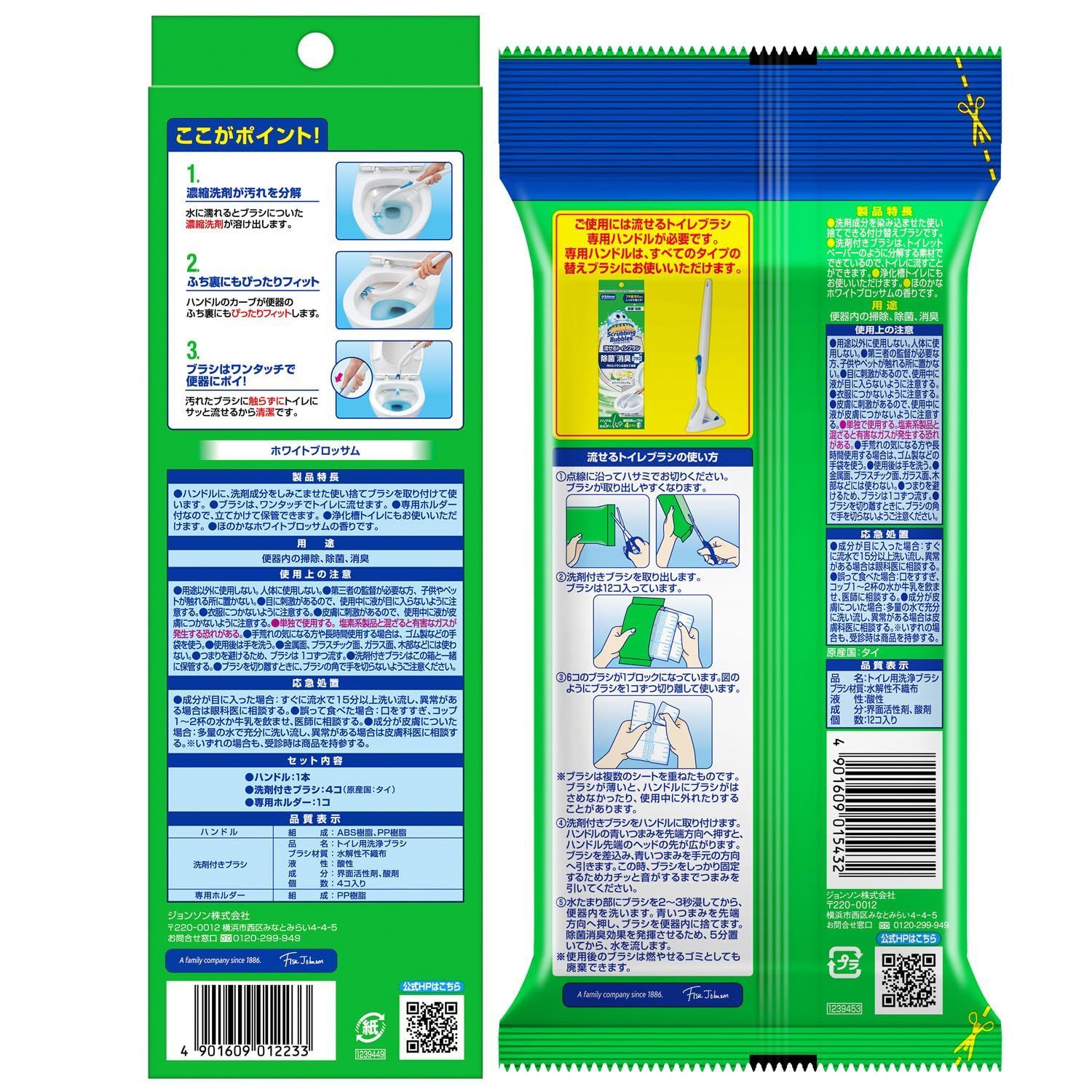 【 限定】 便器内の掃除はこれ一本、濃縮洗剤付きトイレブラシ ふち裏にもしっかり届く形状で除菌 消臭効果をプラス 黒ずみなどの便器の汚れをしっかり落とせる掃除洗剤 汚れたブラシがそのまま流せて清潔 香り:ホワイトブロッサムの香り 内容:本体セット(付け替えブラシ4個)、付け替えブラシ12個セット 流せるトイレブラシ 除菌消臭プラス ホワイトブロッサムの香り 本体1本+付け替え16個セット(ホワイトブロッサムの香り4個入り+ホワイトブロッサムの香り12個入り) 便器内の掃除はこれ一本。汚れたブラシはそのまま流せる濃縮洗剤付きトイレブラシ。
