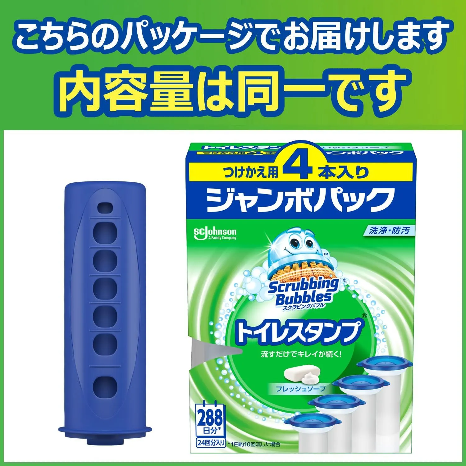 【新着商品】4本(24スタンプ分) 本体ハンドル+詰め替え用 洗剤 フレッシュソープの香り 洗浄剤 防汚 掃除 トイレスタンプ 付け替え用 トイレ掃除 まとめ買い Bubbles) 【 (Scrubbing 限定】 スクラビングバブル