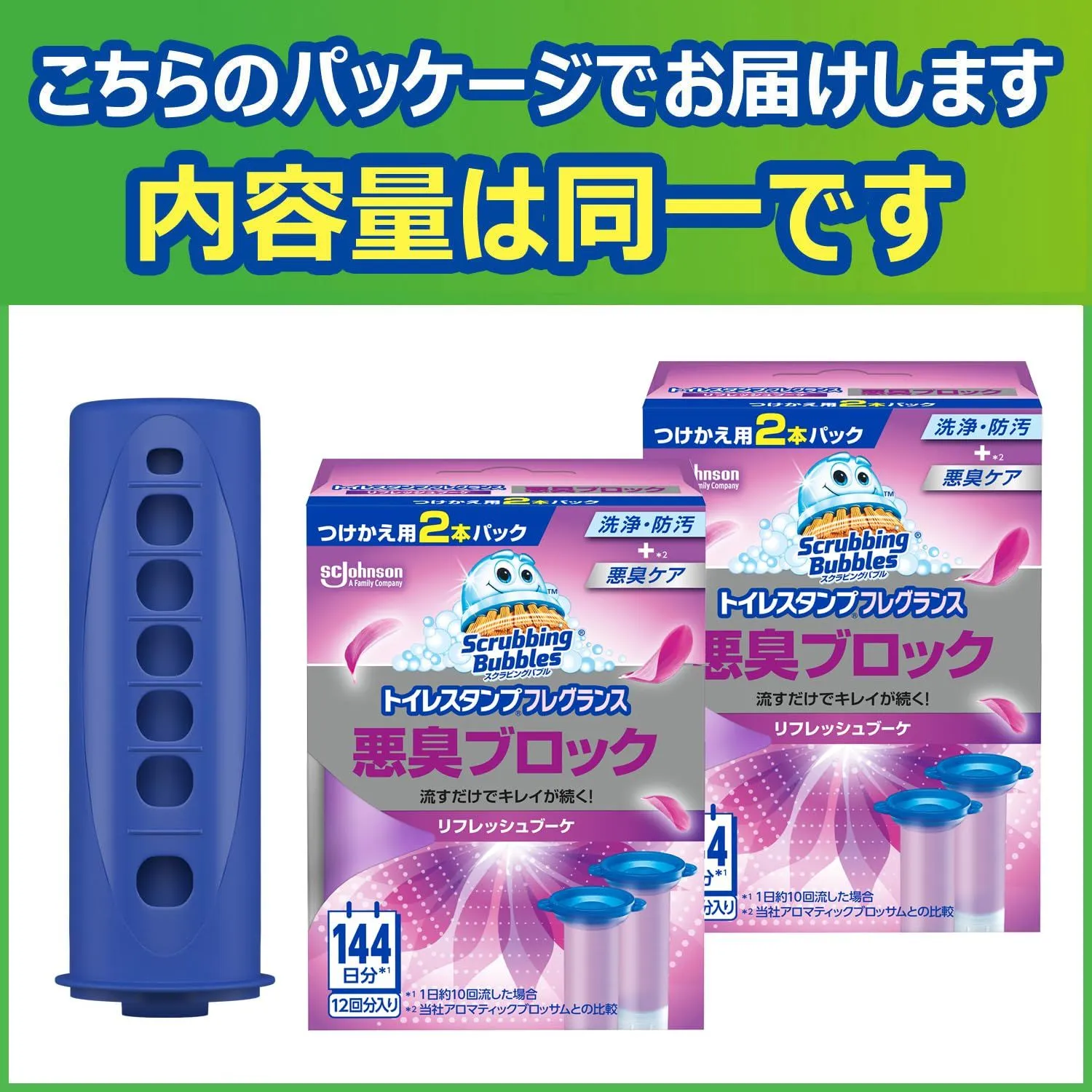 【スクラビングバブル トイレスタンプ 悪臭ブロック リフレッシュブーケの香り 本体ハンドル+詰め替え用 4本(24スタンプ分)の商品詳細】