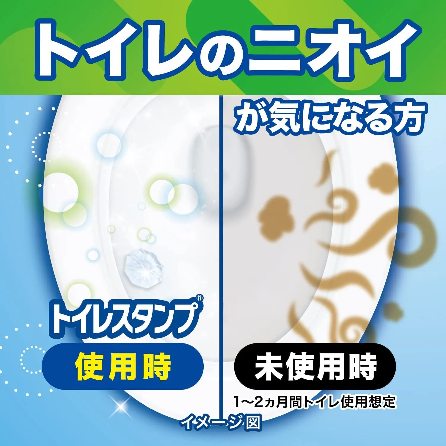 ●1回のスタンプでキレイが12日間続く!流すたびにしっかり洗浄してキレイが続くトイレのスタンプ(※1日約10回流した場合)