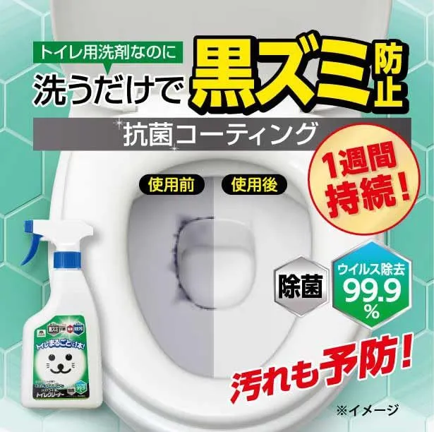 【黒ずみ予防】トイレの掃除後に、水洗いをするだけで便器をコーティングし、黒ずみの付着を予防します。