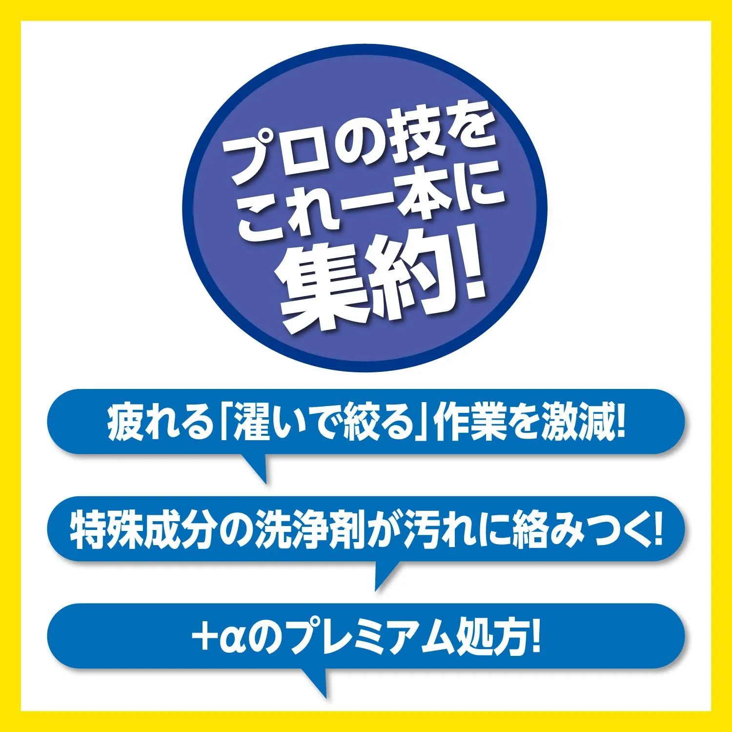 範囲が広ければ広いほど効果を現す清掃時間短縮は「拭く」「濯ぐ」「擦る」など一番大きなエネルギーを軽減します。プレミアム処方で+αしたこの成分は、更に汚れ落としをパワーアップさせます。