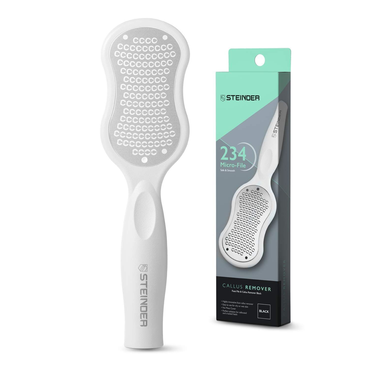 フットファイル角質リムーバー Steinder かかと 角質取り 削り マイクロカッター 丸洗いOK 乾湿足用 カバー付き 安全 衛生 かかときれい ホワイト ラージサイズ