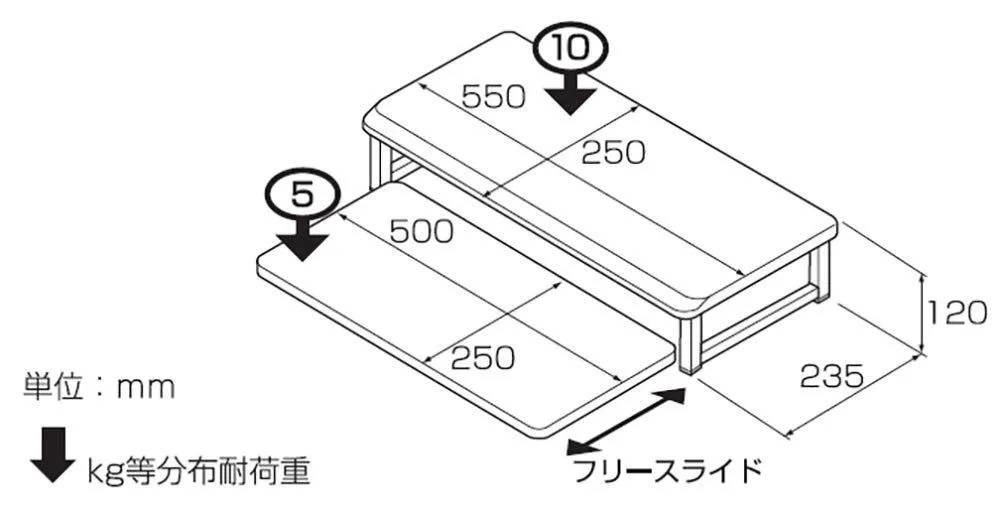 モニタ台/W550xD250x120mm、キーボードテーブル/W500xD250xH40mm