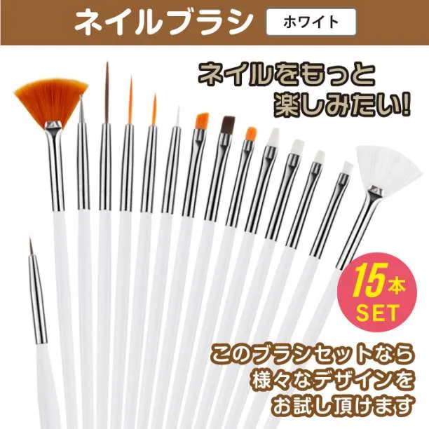 ネイルブラシ 15本セット ホワイト ジェルネイル ジェルスターター