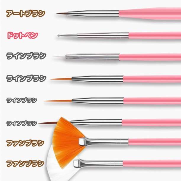 基本ブラシ、フラットブラシ、アートブラシが揃ったネイルブラシセットです。綺麗にジェルネイルを楽しめます。