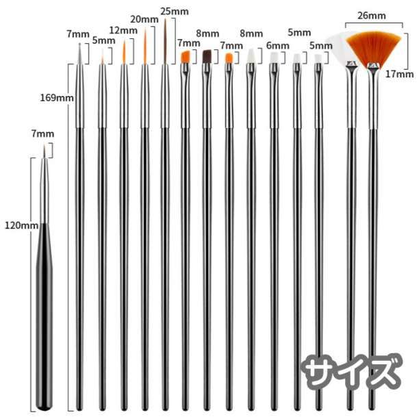 とてもお得なブラシ15本セットです。様々なサイズのブラシが揃っていますので、