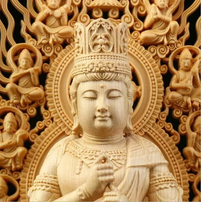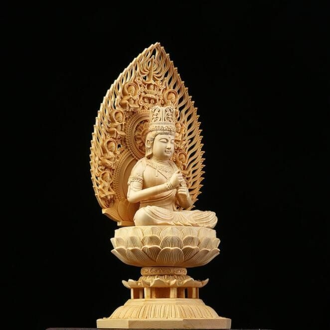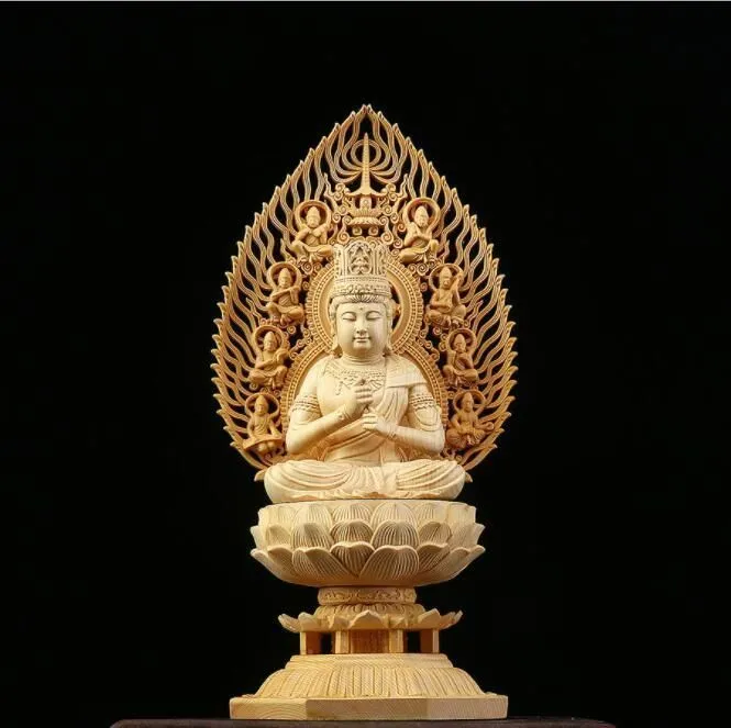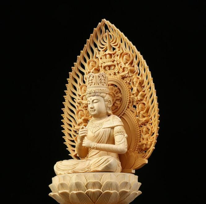 極上品/綺麗 総檜材 仏教工芸品 木彫仏像 精密彫刻 仏師で仕上げ品 大日如来座像