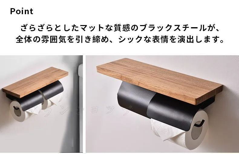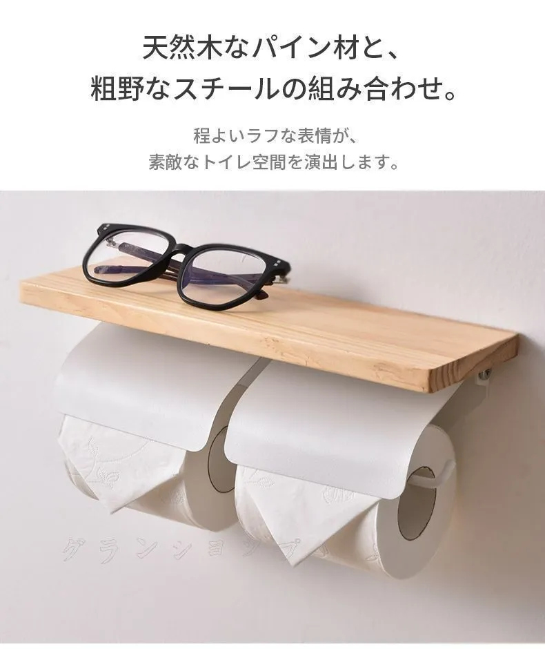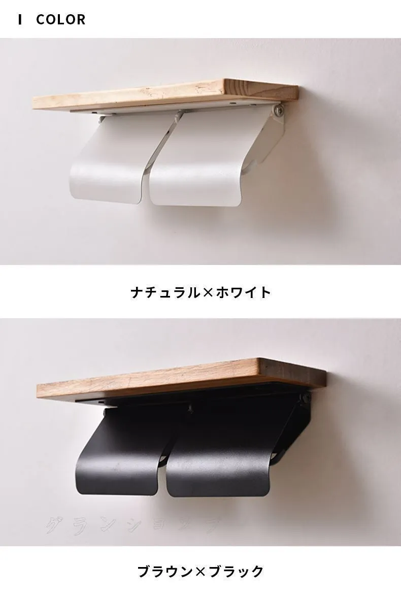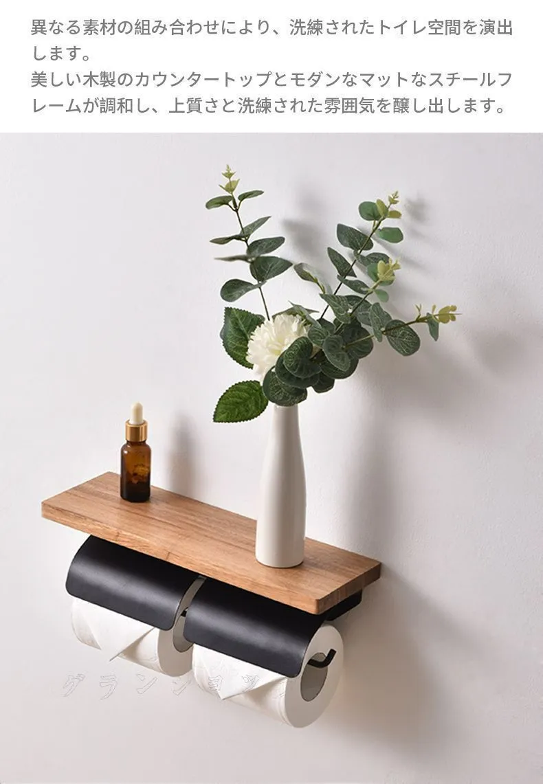 2連 ダブル ツイン おしゃれ アイアン スチール 金属製 棚付き トイレ ホルダー 二連 木製 トイレ用品 トイレ インテリア 棚付き 北欧 モダン シンプル トイレットペーパーカバー トイレットペーパーホルダー