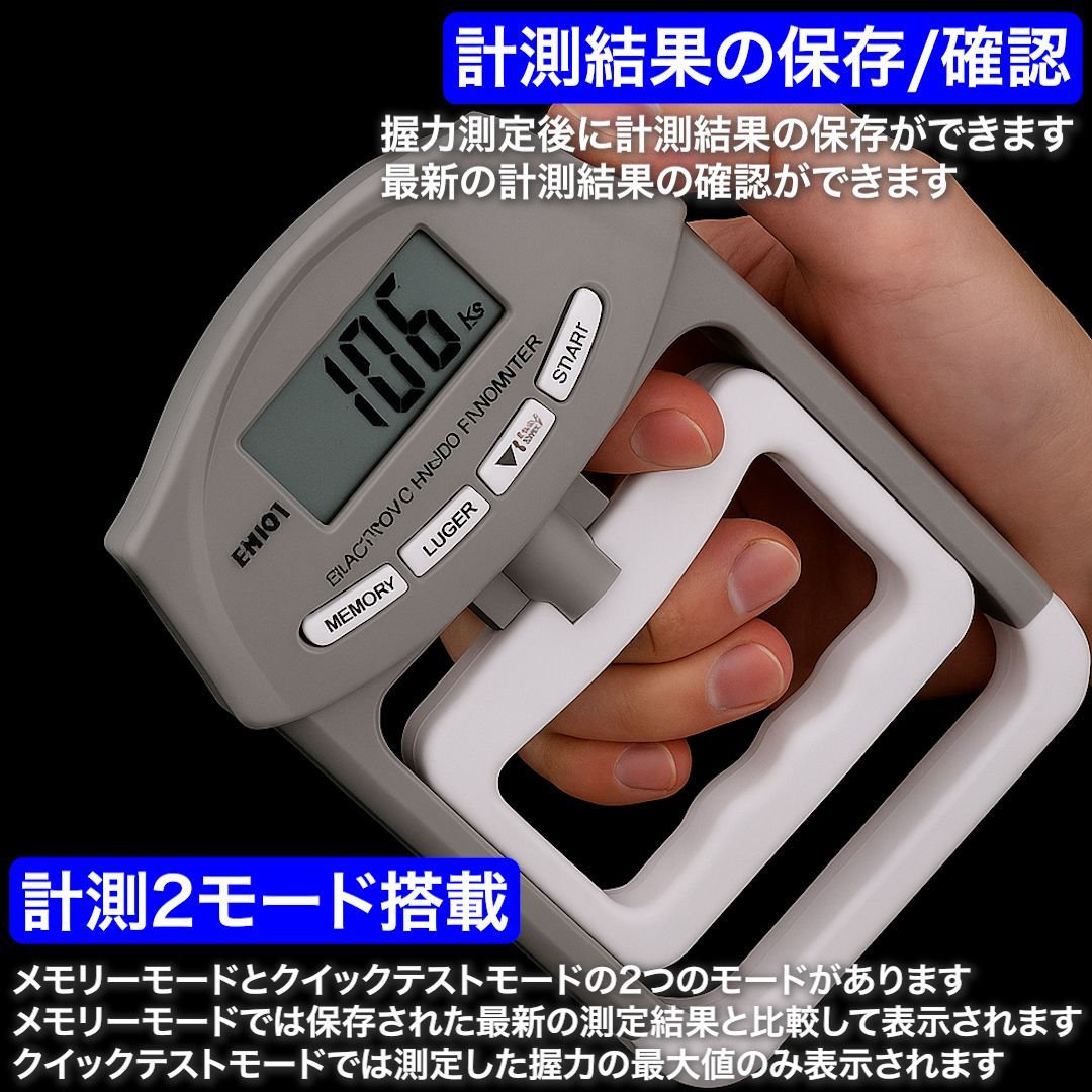 デジタル握力計 ハンドグリップメーター 握力測定 LCD表示 体力測定 高齢者 リハビリ トレーニング 記録機能 単位変換kg/lb 日本語説明書付き