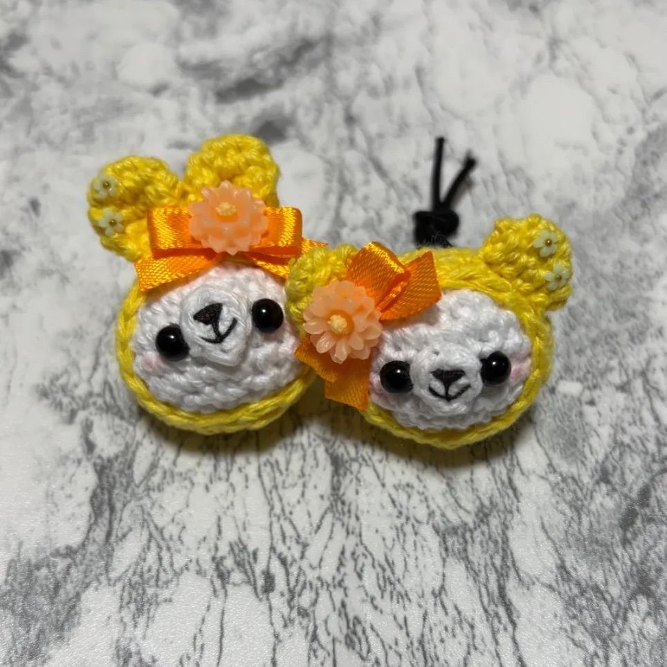 あみぐるみヘアゴム ハンドメイド うさくま イエロー